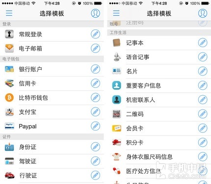都设置完毕之后就可以开始记录密码了,1Passe的优势在于它有非常齐全的密码模板,除了常用的银行账户、信用卡、支付宝等等,居然还有比特币钱包一项,还真是与时俱进。重要信息也能记录,需要的时候随时查看提取即可。