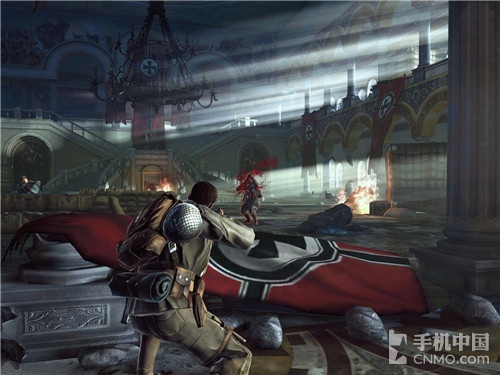 此外,从官方给出的截图看,游戏的采用了3D建模,画质细腻精美,场景渲染以及各种爆炸、水纹、光影效果都有着出色的表现,可以说开发商在这方 面下了不少功夫,这样的出色设计使游戏看起来更为逼真带感。另外掩体的设置比较丰富,有沙包、残垣断壁、废弃坦克等等,玩家需要借助掩体来不断推进,消灭 一波又一波法西斯份子。