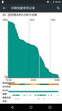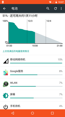 Nexus 6配备了一块3220mAh电池,而经过实测,在开启Ambient Display模式状态下Nexus 6可以待机两天,并且Android 5.0还内置了节点助手功能,在开启状态下节电助手会降低设备性能并且限制震动和大部分的后台流量,从而真正的达到省电的目的,节点助手会在设备进行充电时自动关闭。