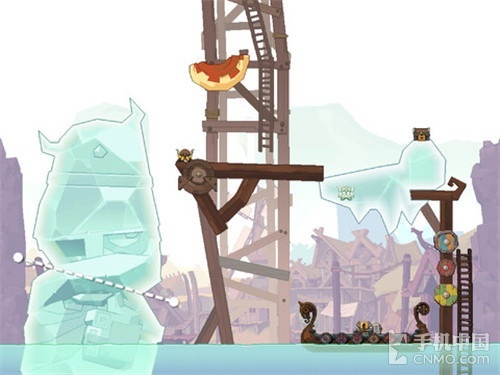 玩法上,该作并没有难为玩家,广大的玩家需要遵循物理原理,通过对冰块、绳索、木板等物体的合理切割,来达到游戏的目的。这里的划线操作与一般游戏稍有不同,并非快速一划,而是可以固定一端,然后拖动微调到另一端,可见游戏对操作精度要求还是挺高的,一点点的差异就有可能达不到你想要的目的,相对而言还是很考验玩家的益智力的。另外,游戏的任务是要玩家把关卡中所有被困的维京人安全的送达到屏幕下方的船上。