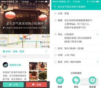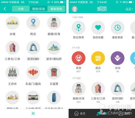 发现功能和其他点评类软件类似,大家根据分类可以寻找附近的店铺或是按照不同分类展示全北京的各类有趣小店。与其它点评类软件不同的分类就是“活动”、“休闲”、“周边游”这三个分类,想看话剧演出,喝下午茶,玩桌游,照个性化毕业照,统统满足您的需求,有趣的好玩的等着您来发现。
