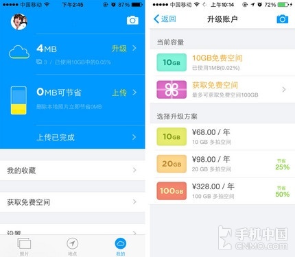 前面说到《多拍相机》可将照片上传至云端保存,不占用手机中的内存空间,其实当您按下快门的那一瞬间,原图已经通过网络上传了,减少了操作步骤用户用起来更加简便。《多拍相机》免费赠送给每位用户10GB的免费空间,就算是狂热的手机摄影爱好者也足够使用。