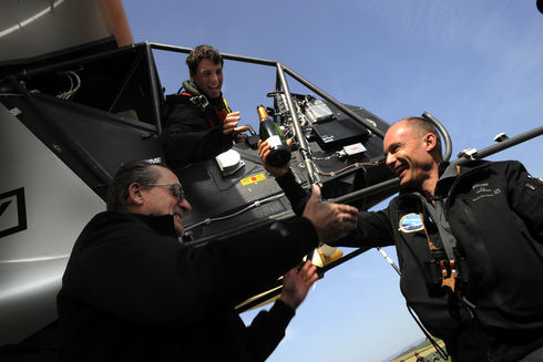 在欧盟的赞助和支持下,“阳光动力1号”飞到了布鲁塞尔,接着又飞往巴黎布尔歇,在那里,它受到了“贵宾”般的礼遇。