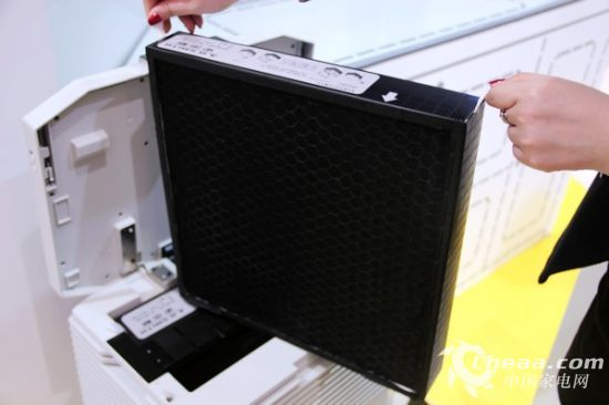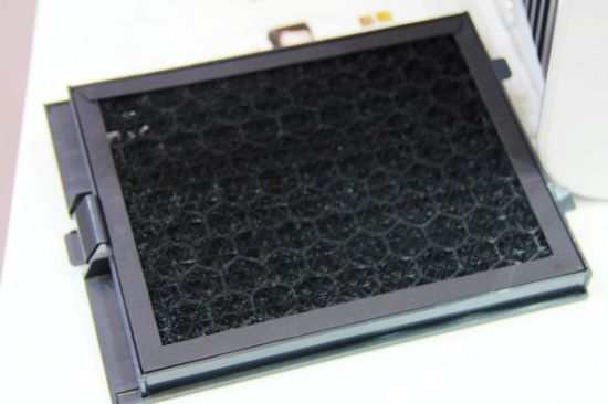 苏泊尔选择了4重滤体系,第一层初效滤网这个不必多说,用于粗过滤及保护内部其它滤网。第二层活性碳滤网则用于净化甲醛、苯、以及多种装修污染物及异味方面,现场的工作人员向小编介绍,空气净化器的净化最难点也洽洽在此,因此苏泊尔在这一方面考虑的比较多,活性碳滤网的品质也经过严格筛选。