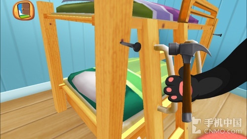 小朋友点击家具即可进入修复界面,游戏完全模拟了真实操作过程,玩家需要用手将折断的椅子腿归位,并根据自己的喜好选择两种全新的颜色,用小刷子为椅子刷上靓丽的色彩。修复床的过程要稍稍复杂一些,先用锯子锯断不需要的木料,并用吊绳一步一步的将零散的零件安装在一起,最终组合成为一张舒适的大床。