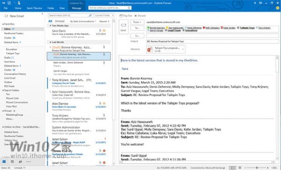 智能应用:应用将支持Tell Me功能助手,Clutter邮箱清理功能、Insights找到相关信息等智能功能。