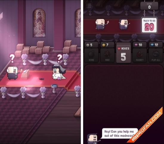 推荐理由:《婚礼逃脱》是一款题材很有意思的三消游戏,游戏开发团队把游戏中的每一个细节都设置成了逃婚时的状态,就连游戏开始的按钮注释也是一样,这是一款充满“逃婚”味道的游戏,配合简单易懂的三消玩法,让玩家很容易沉浸在这股恶搞的风潮里。