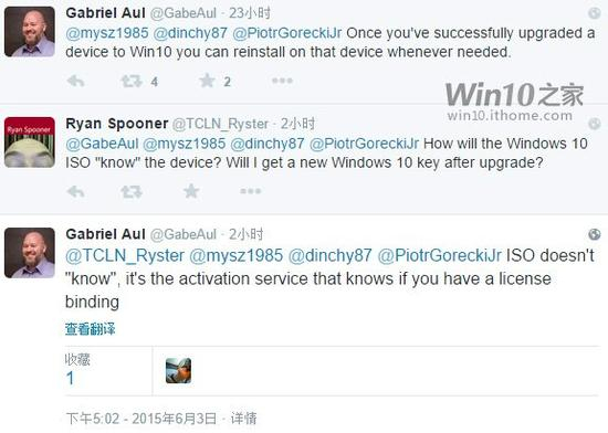 当然,还是有用户想一探究竟,要弄明白Win10安装程序为什么这么“神奇”,难道ISO镜像能够识别设备吗?这个问题还是由我们的老朋友,微软Win10预览体验计划负责人Gabriel Aul在Twitter上来回答,他解释道:ISO当然不能识别设备,(Win10激活)依靠的是“激活服务”来识别当前设备是否拥有许可证绑定。