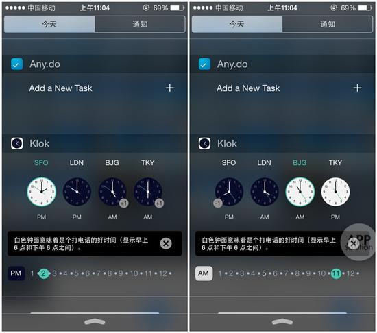 既然是一个主打通知栏插件的 app ,Klok 自然在通知栏工具方面有着出色的表现。简洁的扁平化设计能够让哪怕是最严苛的处女座都爱上,再加上钟表下面的小提示,相信你不会因在错误的时间打电话而被臭骂。