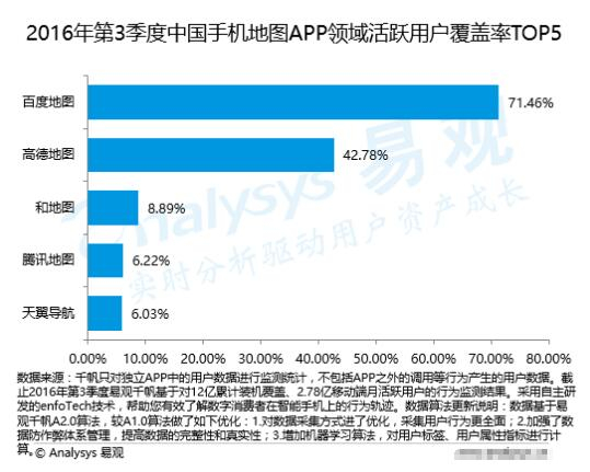 易观Q3报告:百度地图活跃用户覆盖率71.46%