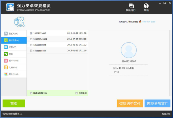 想恢复苹果手机删除的短信我们就需要使用强力安卓恢复精灵,这款软件不仅可以帮助恢复我们苹果手机删除的短信,还且还能够恢复我们苹果手机误删的通讯录、照片和微信聊天记录,功能十分强大。以下就是强力安卓恢复精灵的整个恢复过程。