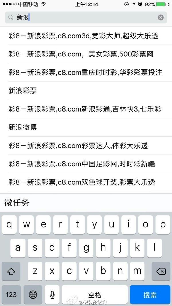 从昨天深夜起,苹果App Store的搜索排行榜就被赌博类关键词完全占领,这些关键词包括时时彩、炸金花、澳门银河、斗地主、德州扑克等。当用户在搜索框中输入新浪、百度、微信等词汇时,App Store给出的推荐应用也都是彩票、时时彩、大乐透等。