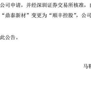 2月24日凌晨,鼎泰新材发布了股票更名公告,证券简称更名为“顺丰控股”,证券代码不变,仍为002352。