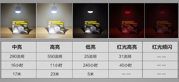 高亮、中亮、低亮、红光高亮、红光频闪,