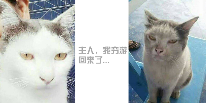不信你看看网友@老Fin的猫出去穷游一趟回来变成啥样~