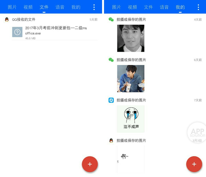 微痕迹还能识别出微信、TIM、QQ 接收的文件以及拍摄或保存的图片,将它们单独归类,防止误删。