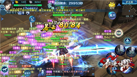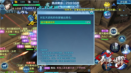 始皇降世在每周四、周日晚上十点开启。少侠们以家族为单位挑战秦始皇、玄天武机、白起、李斯四个BOSS并获得奖励。