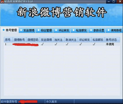 在淘宝上除了有很多水军组织者,还出现了大量营销推广软件。这些软件可模拟真人自动批量发帖、转发、点赞、取关、采集微博账号等。还可以定时更新状态。