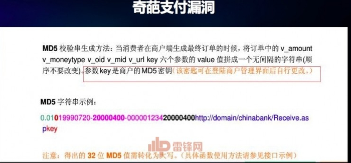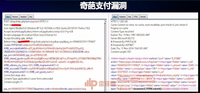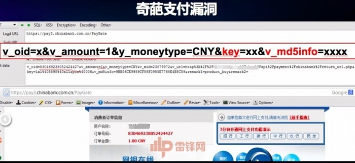奇葩的支付漏洞,电商网站选购完商品最后一步进行结算支付,当时选择的支付方式是网银在线,这个请求输入一个订单号,系统会返回一个表单,最终会拼接成网银在线的最终支付链接,如果不仔细看可能就不会发现里面多了一点东西。看 KEY参数,在一般支付宝或者是网银支付链接里,肯定有一个参数校验的过程,为了防止用户篡改支付过程的金额和订单号会做参数交验, KEY 会不会就是参数交验过程中遇到的密钥?当时我找到网银在线的文档,经过仔细研究,猜想 KEY 可能是参数交验所需要的密钥,根据规则结合前面的 KEY ,自己手动构造一个算参数交验,自己算出来的数值和系统反馈回来的数值一样,印证了我的猜想是正确的,我就可以结合这个规则和 KEY 构造出任意金额的支付链接,而且可以保证支付链接完完全全合法有效,所以,这可以算是真真正正的任意金额支付漏洞。