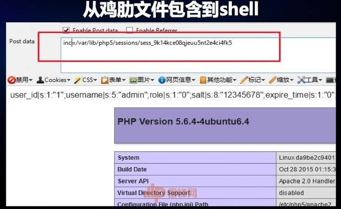 某次测试中找到某个系统存在 PHP 文件包含漏洞,经过测试发现这个系统没有任何上传点,文件包含是本地文件包含,意味着无法通过上传或者是远程文件包含拿到 web shell ,这时通过文件包含漏洞继续读系统源代码,最后在某一个文件中发现了这么一行代码,这行代码意味着可以控制 session 变量,PHP的 session 保存服务器某个固定的路径下,而且文件名是固定的前缀加上 session ID,路径可以知道,session 的变量也可以控制,可以通过这个页面往 session 文件里写一句话,最终通过包含session文件的方式获取到web shell。