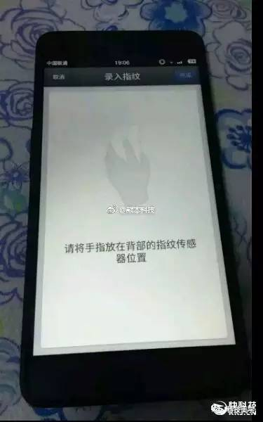 还有一张系统界面图,录入指纹的时候明确写着“背部的指纹传感器”。