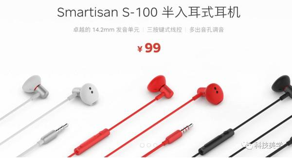 “Smartisan S-100半入耳式耳机”,配色方面采用了和红色特别版iPhone 7几乎一样的风格,同时也提供黑色、灰色款式。