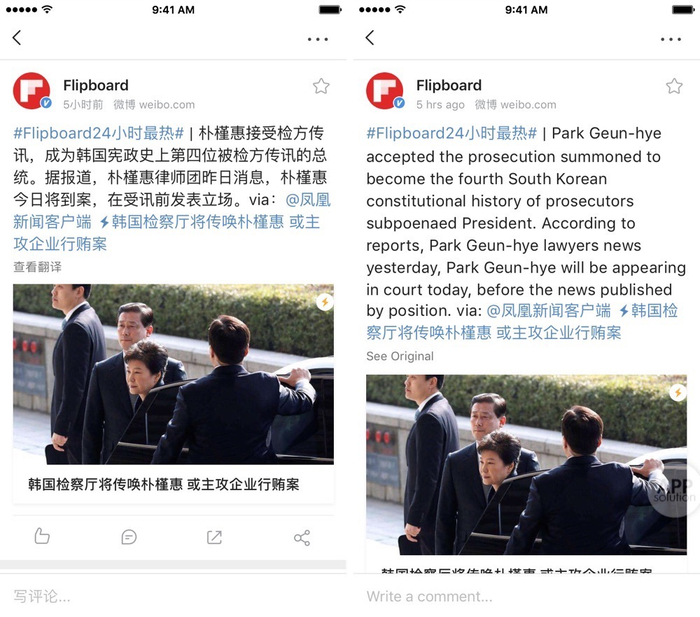 微博国际版独有的翻译功能实际体验效果很不错,能够准确地做出翻译,并且可以很好地区分话题、用户名及原文中出现的人名。