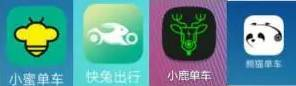当然,也不是所有家都抓住自行车不放,熊猫单车、小蜜单车、快兔出行、小鹿单车等这些“动物辈”单车的logo就很有自家特色。