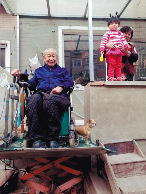 宋老办了残疾证,是肢体三级残疾。他以前很愿意到处走,这下子受限了。宋老想到若想出去,要过两道关,一是不能让别人推着轮椅,得自己能操作。于是他自制一个能充电的轮椅,这对于机械技术员出身的他来说,并不是难事。第二关就是从家到户外的过程,虽然宋老家住1楼,但是需要下3个台阶,这3个台阶对残疾人来说,是很大的一道难题。