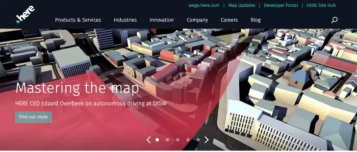 HERE生产高清地图的策略与Google类似,这两家公司目前都是一次性采集一整个街区的数据。HERE通过车顶安装的四个广角的24 兆像素摄像头、旋转式的激光雷达、陀螺仪以及GPS 系统,依靠自有算法能够生成高清地图。按照Here的预期,用于自动驾驶高清地图服务预计将在2020年能够上线。