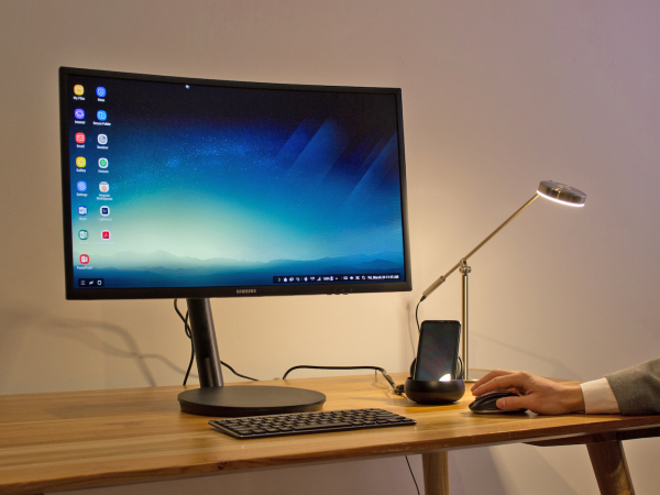 三星Galaxy S8拥有一个名为DeX(Desktop Experience)杀手级功能。可以这么说,拥有了S8,出门办公再也不用带笨重的笔记本了,你需要的只是DeX Station扩展底座。这款扩展坞拥有USB接口,支持连接鼠标、键盘,而且还拥有以太网接口和HDMI接口,连接显示器之后便可以输出针对桌面优化后的Android体验,整体界面看起来有些类似Chrome OS,支持多窗口,放大和缩小,以及常见的快捷键命令。另外像Office等第三方生产力应用还专门对三星的DeX桌面进行了优化,外出办公无忧。