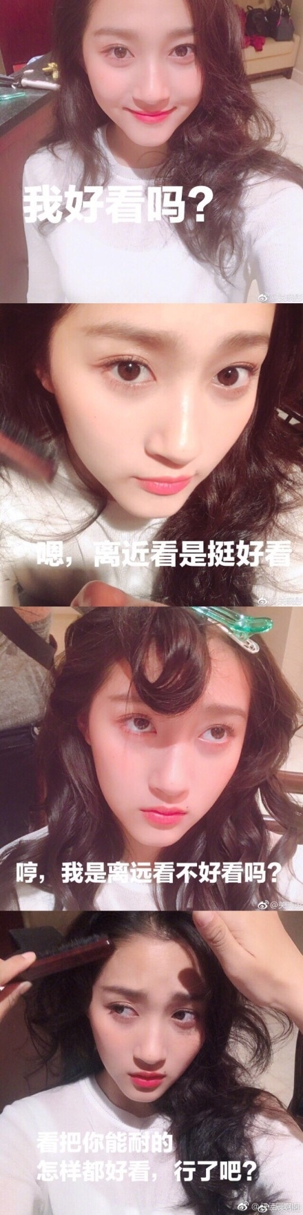 昨日,关晓彤在微博上晒出一组自拍照,使用的正是华为nova手机 。照片中,关晓彤鬼马精灵,表情搞怪,并附文:“可以当表情包的自拍,自行配文字,看看谁比较有才哈哈哈哈。”