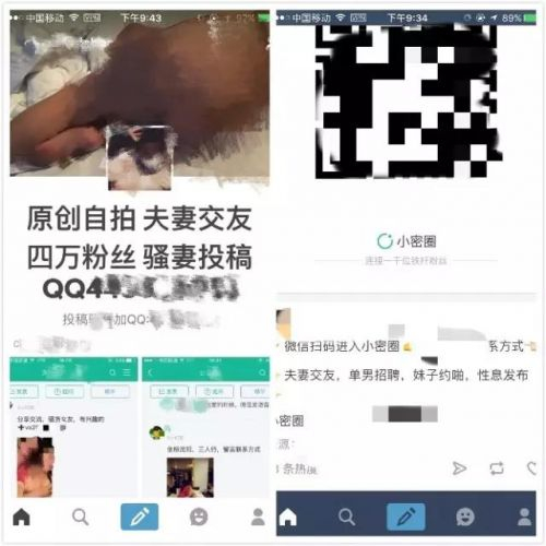 情色信息的发布渠道主要分为国外和国内两种。国外以1024、91、Tumblr等平台为代表。在国内,以常用的QQ、微信、微博等社交平台和媒体为主,都是情色或软情色信息的传播平台。通过发布包括情色图片、交友信息、小视频、网址链接等内容,来吸引了用户的注意力,同时起到了引流和沉淀的作用。