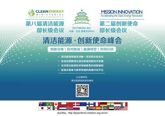 第八届清洁能源部长级会议(CEM8) 和第二届创新使命部长级会议(MI-2)将于2017年6月6日-8日在国家会议中心召开。会议同期将举办创新剧场演讲、清洁能源创新技术展等丰富的活动,展现清洁能源领域前沿技术、最新产品以及解决方案,促进清洁能源领域技术交流与合作。