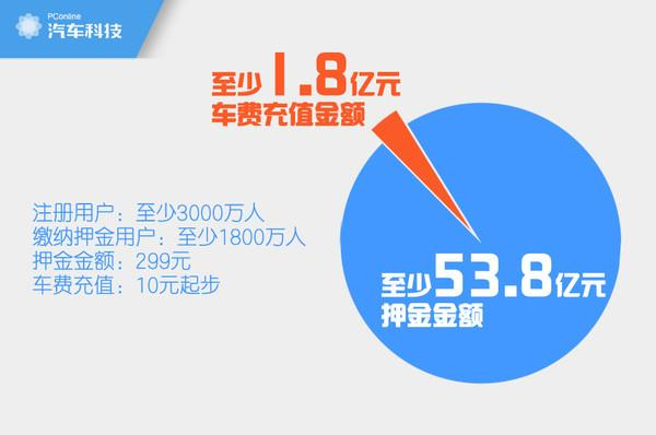 可推断出摩拜的注册用户数量至少在3000万以上,以3000万用户数为例,保守估算其中仅有六成用户(即1800万有效用户)支付了押金与充值车费,按每人车费充值10元计算,那其车费余额都将高达1.8亿元,而实际数额肯定大于此数。