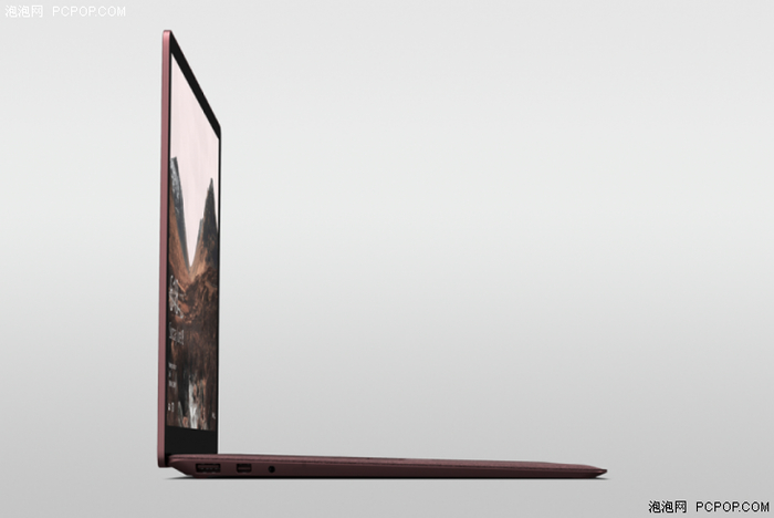 轻薄方面,Surface Laptop的厚度为14.48mm,重量1252g。13.5英寸屏幕下的机身尺寸为308.1 mm x 223.27 mm x 14.48 mm,这样数字在整个13-14英寸的笔记本品类中都是很有竞争力的。