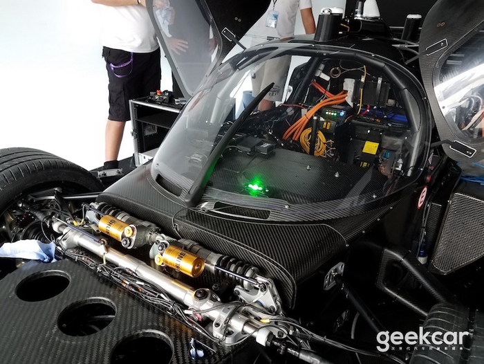 本赛季的 Formule E 香港站上,Roborace 将无人驾驶原型车「Roborace DevBot」带到比赛现场。只不过由于种种原因,这辆赛车并没有登上赛道。静态观察下可以看到,除了传感器之外,车内仍然有驾驶舱。驾驶座舱被分为左右两部分,左边是驾驶位而右边是杂乱的电脑、线缆和显示屏。