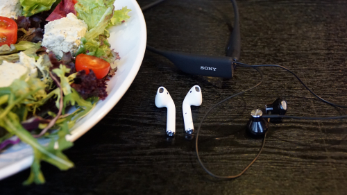【TechWeb报道】随着iPhone取消了3.5mm耳机接口,不少国内的手机厂商也纷纷效仿,相继放弃了陪伴我们多年的3.5mm耳机接口。苹果坚信未来是属于无线的,所以在取消耳机口的发布会上发布了最新的蓝牙无线耳机—AirPods。基于对苹果产品的系统深度结合,AirPods可以说是目前对于苹果设备支持最好的无线耳机,没有之一。而今天另一位参加对比的选手,是SONY的SBH70无线耳机。作为索尼专为运动设计的蓝牙耳机,SBH70也具备着非常不错的功能性和便携性,下面一起来看看这次苹果和大法两款耳机的对比吧!