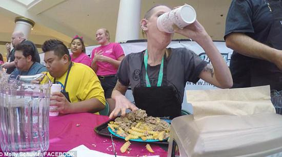 斯凯勒原本是一名素食主义者,而和朋友的一次打赌改变了她。她的朋友曾打赌说她不可能一次性吃下约4斤重的汉堡,但她在15分钟内便做到了。之后,她便开始疯狂地尝试各种食物。她曾一次性吞下1.8斤重的的墨西哥卷饼,还曾在短时间内吃完440根鸡翅。