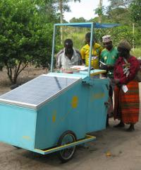 除了能卖卖太阳能充电设备,还有人出租太阳能充电小推车。