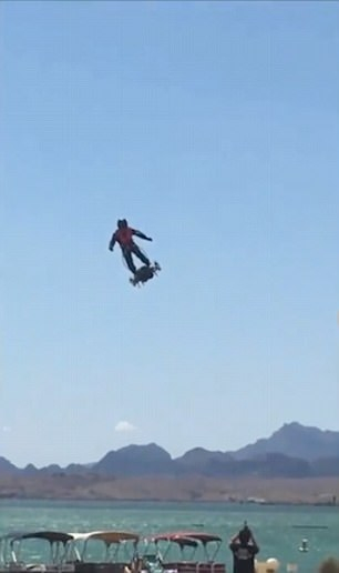 本月早些时候,Franky Zapata曾是一名专业的喷气式滑雪司机,他被看见在哈瓦苏湖上空飞行了他的飞行滑板。