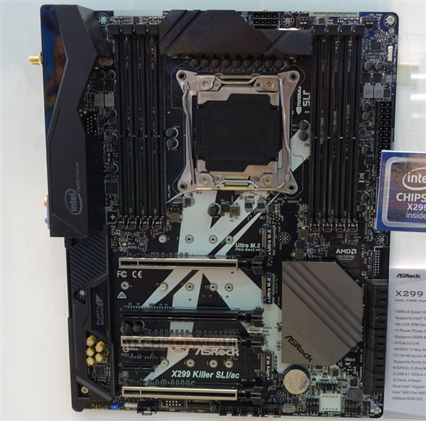 Intel即将发布新一代发烧级桌面平台,处理器采用新的封装接口LGA2066,配套芯片组也升级为X299。台北电脑展还没正式拉开大幕,各大主板厂商的X299新板子就纷纷亮相了,华擎、华硕最为积极,技嘉、映泰也露面了。