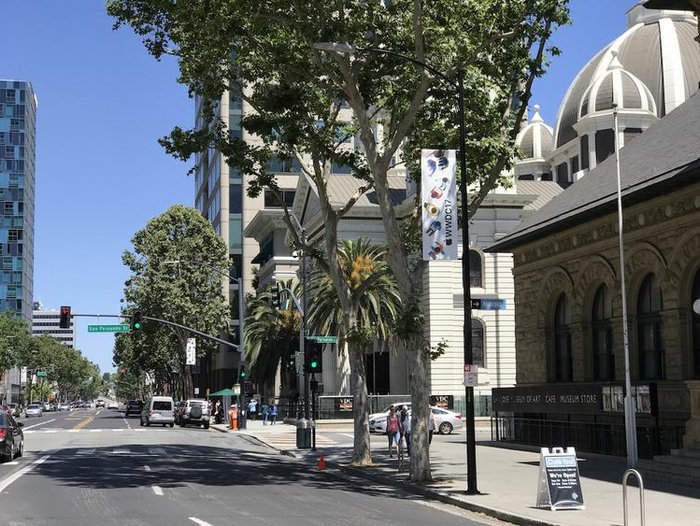不仅如此,整个圣何塞市区的街头路灯,也都挂上了 WWDC 的广告条幅。