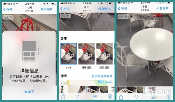 拍摄Live Photo后,在相册界面可以通过向上轻扫以修改具体效果等,而新加入循环播放、来回播放和长曝光等效果令该功能的可玩性大大增加,不过...依旧只是个痒点功能,毕竟只能在iOS用户间欣赏传阅。