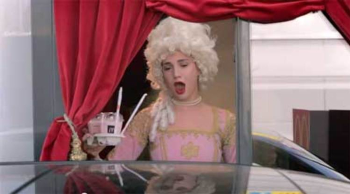 麦当劳此前在 “Drive-thru” 上玩过很多花样,当然主要是在(出门必驾车的)海外市场。为了突显这种模式的方便快捷,麦当劳曾经在广告片里请来了外星人、黑衣人、电锯狂人、金刚大猩猩、梦露……等一众电影大咖,麦当劳的工作人员都非常淡定地为他们提供了服务。广告片拍的还蛮有意思的。