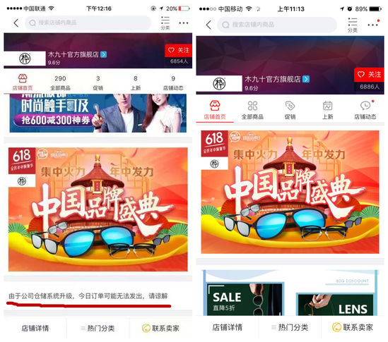 木九十京东官方旗舰店昨日与今日首页截图那么,撤下是否意味着库存系统已恢复正常呢?裂帛服饰旗舰店客服表示,目前库存系统仍未恢复,但是已经能正常下单。当亿邦动力网问及为何撤下公告时,客服则回应称是“公司内部事情”。