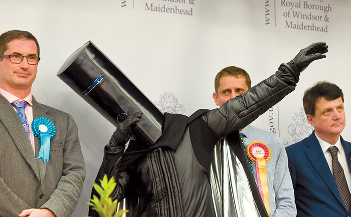 英国最大的主流媒体《卫报》表示,他们也不知道这位铁桶领主究竟是何人物……但 PingWest品玩观看了选举结果宣布的视频后可以确认,这位仁兄的真名为 哈维·强纳森·大卫 Harvey Jonathan David ,宣称自己是一位“星际太空领主” (Intergalactic Space Lord)