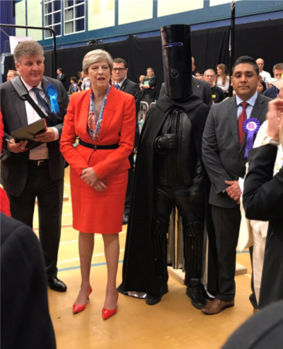 之后,铁桶领主的形象一度消失在英国政坛消失——直到 2017 年大选,老选民们终于又看到了熟悉的身影……