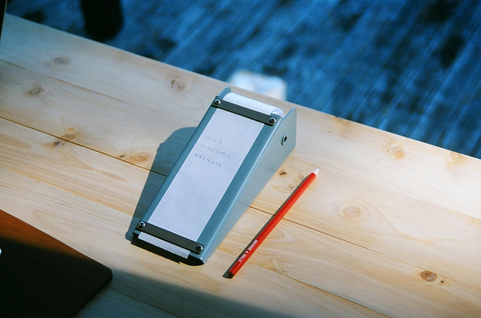 有些时候,和在手机应用里输入清单相比,执笔在纸上写下待办事宜、购物清单或是笔记要方便不少。针对这一书写需求,以开发简单、实用的日常工具为宗旨的新西兰工作室 George & Willy 推出了一款迷你的笔记台。它的坡度符合人体工学,使用起来非常稳固。上下两条铁片起到了固定纸张的作用,不用在额外使用便签或是纸镇。这是它的购买链接,售价为 100 新西兰元。