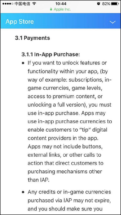 同时,苹果方面强调,iOS软件可使用App Store的支付渠道购买这一方式让消费者向数字内容的提供者支付“小费”。而相关软件不得采用其他的按钮、外部链接或者其他方式,让消费者使用苹果之外的支付渠道。